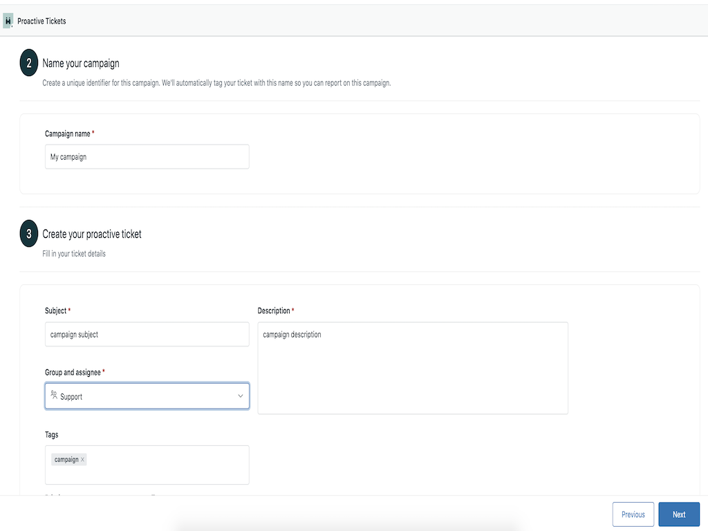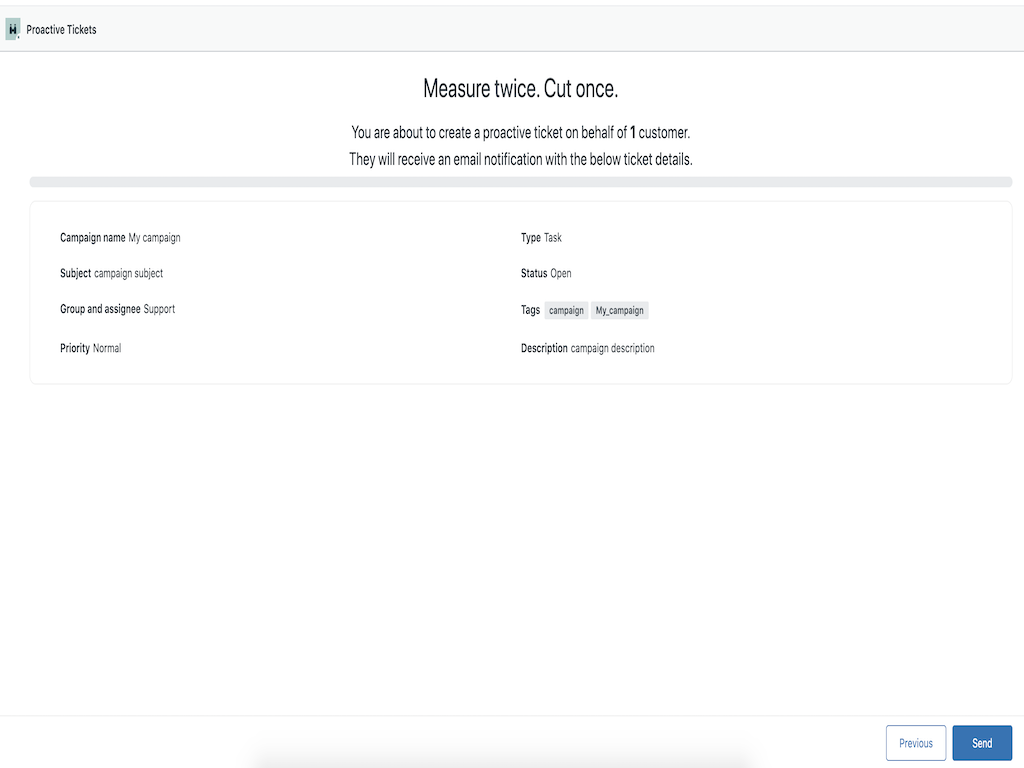 The Proactive Tickets App helps build better relationships with your customers by allowing you to proactively reach out to them via Zendesk Support tickets. The app allows you to generate a list of your users based on any searchable user field, and then create tickets on their behalf.